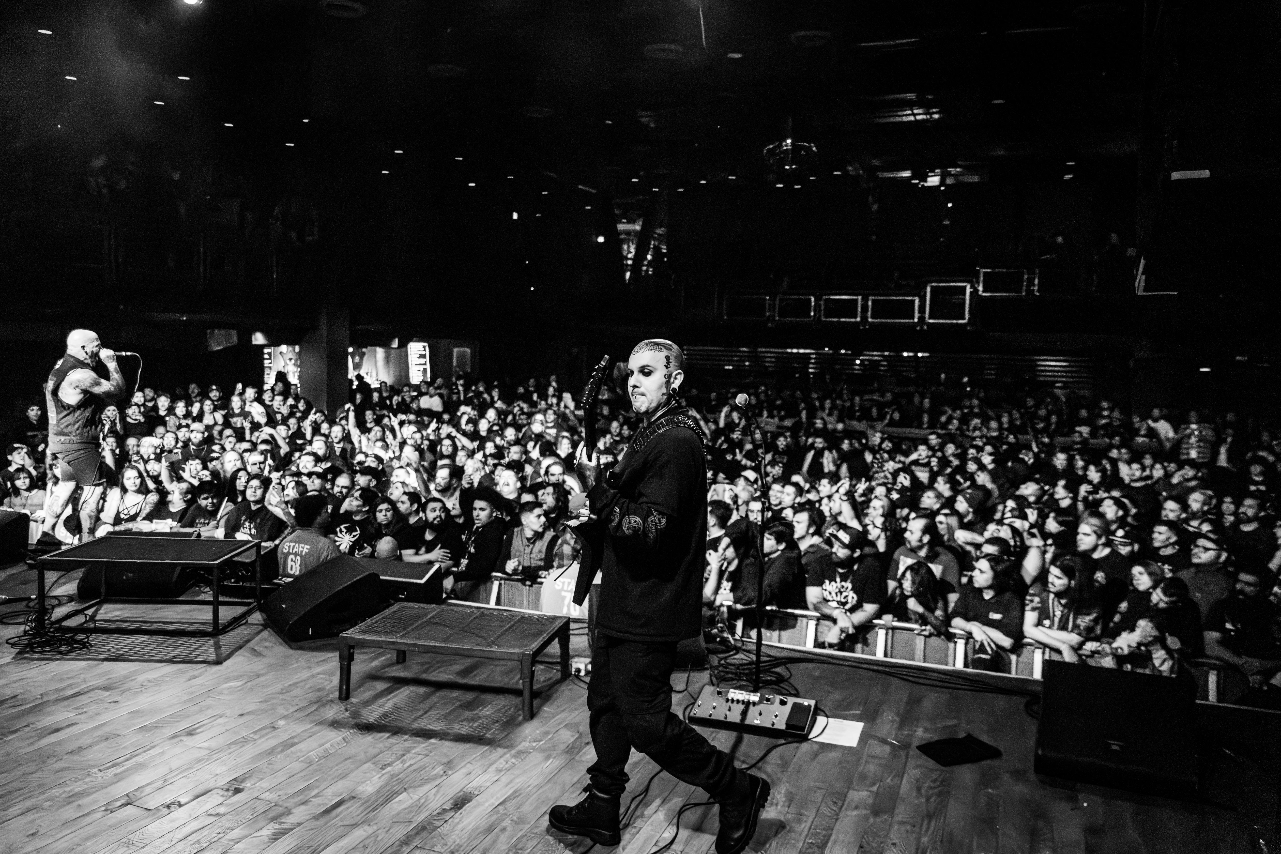 The fun didn’t last long, though, because Carnifex dragged the crowd straight back into the abyss. Opening with the annihilating “World War X,” they plunged the venue into darkness, with only backlighting illuminating their silhouettes.