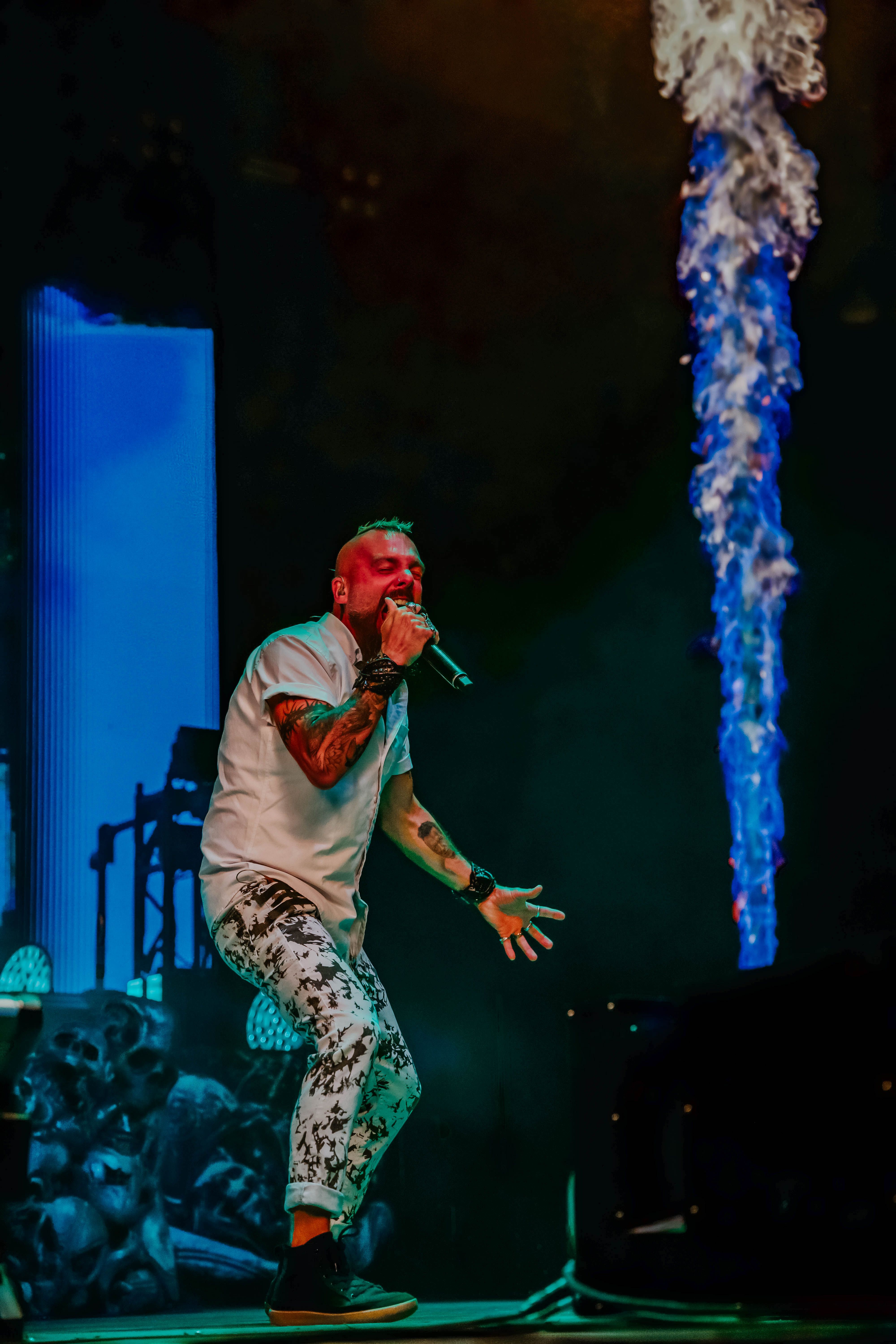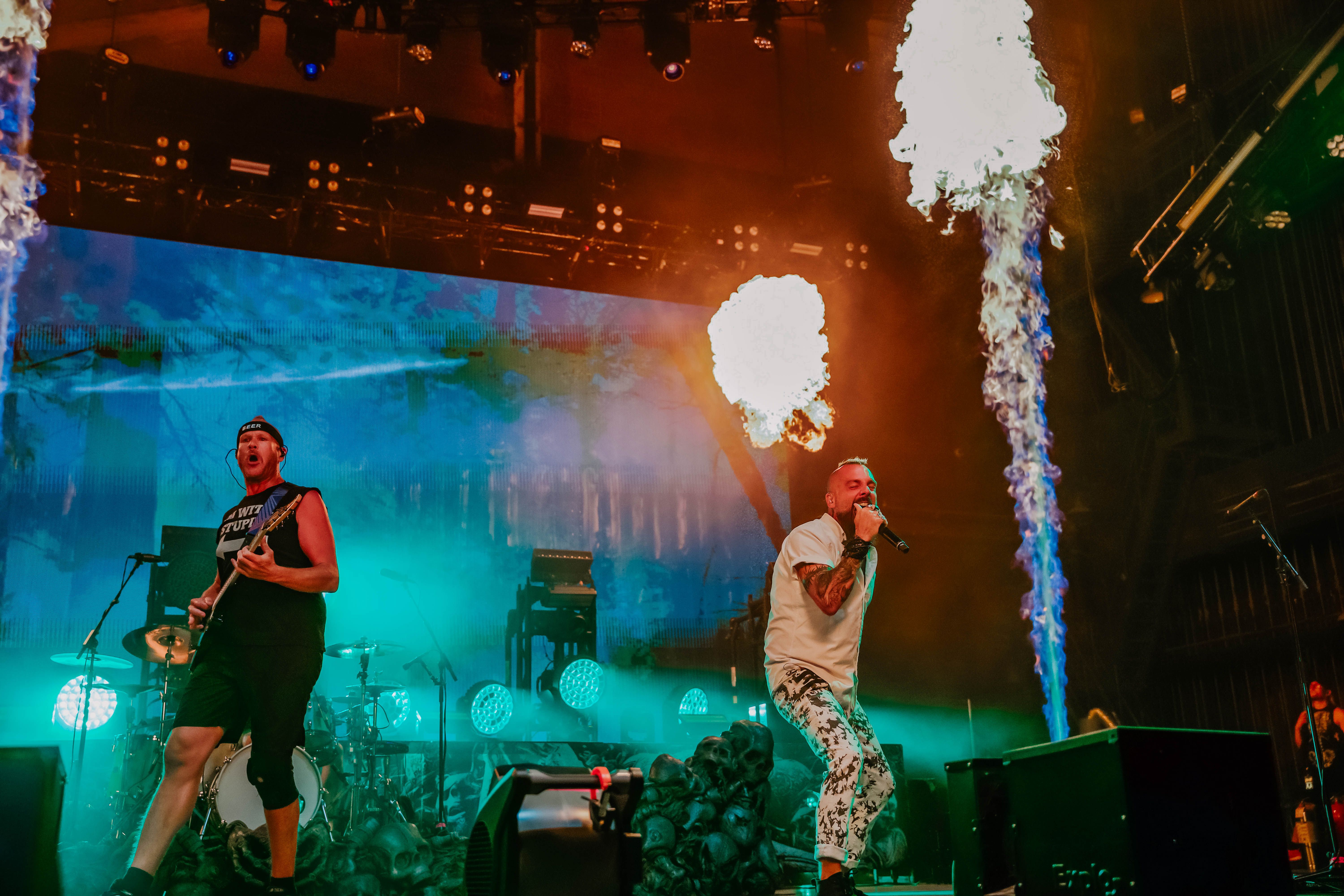 I Prevail (gallery)followed with a set that leaned heavily on crowd connection. Now performing with a single vocalist after lineup changes, the band still held their own—delivering hits like “Hurricane” and “Bow Down” with high intensity. They’ve built a loyal following, and it showed in the sea of fans screaming every word back at them.